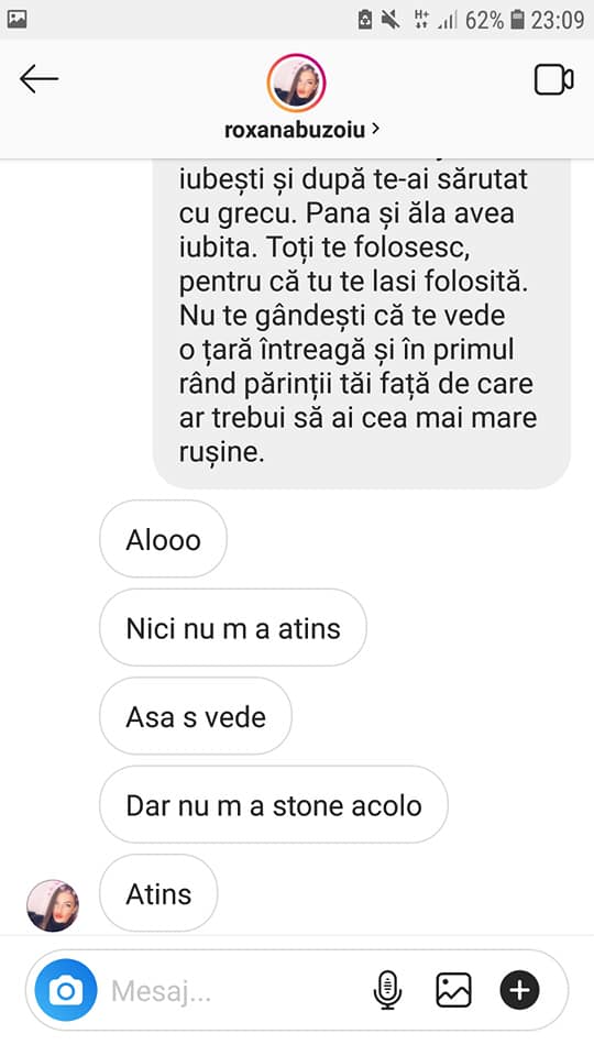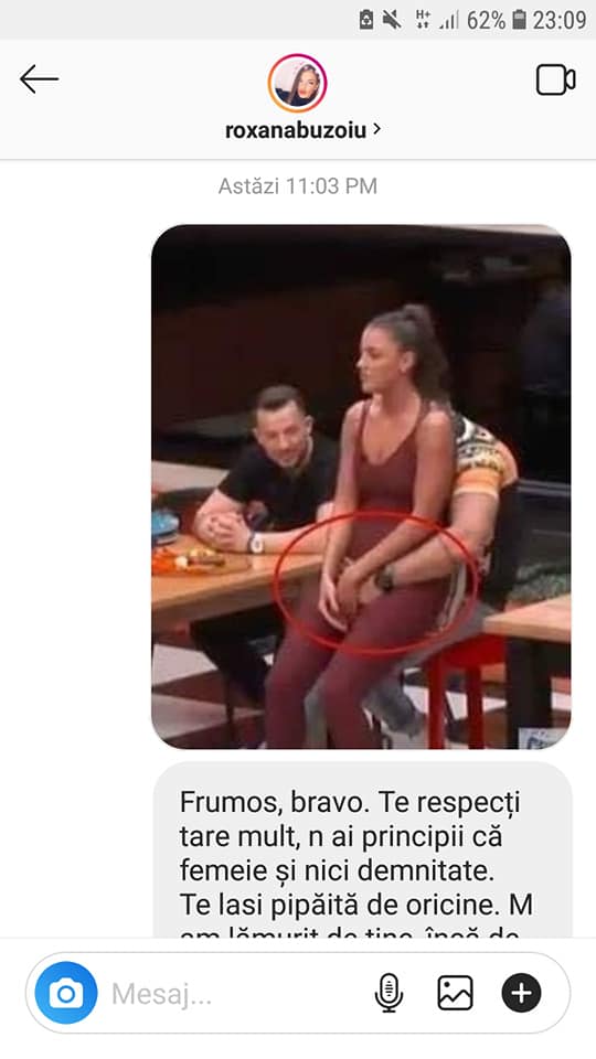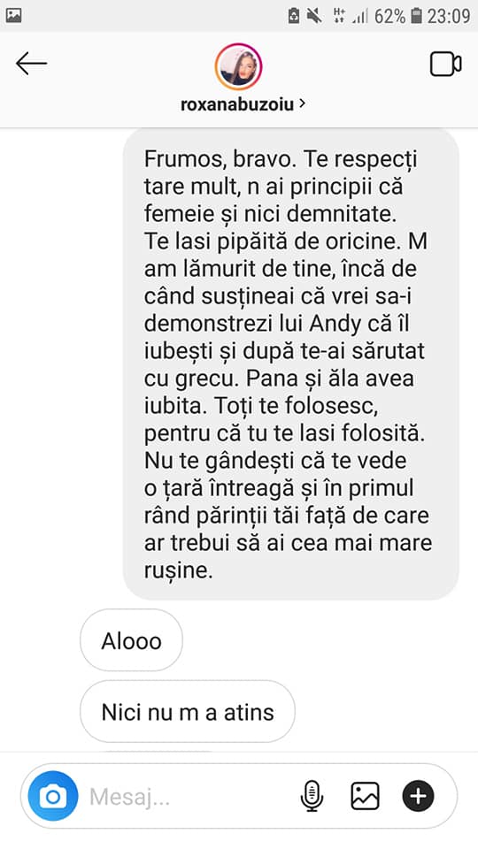 Ba mai mult decât atât, nici Roxana nu pare atât de deranjată de mâna lui Hamude. Însă, chiar ieri, Roxana a primit un mesaj de la un internaut pe contul ei de instagram care sună cam așa: