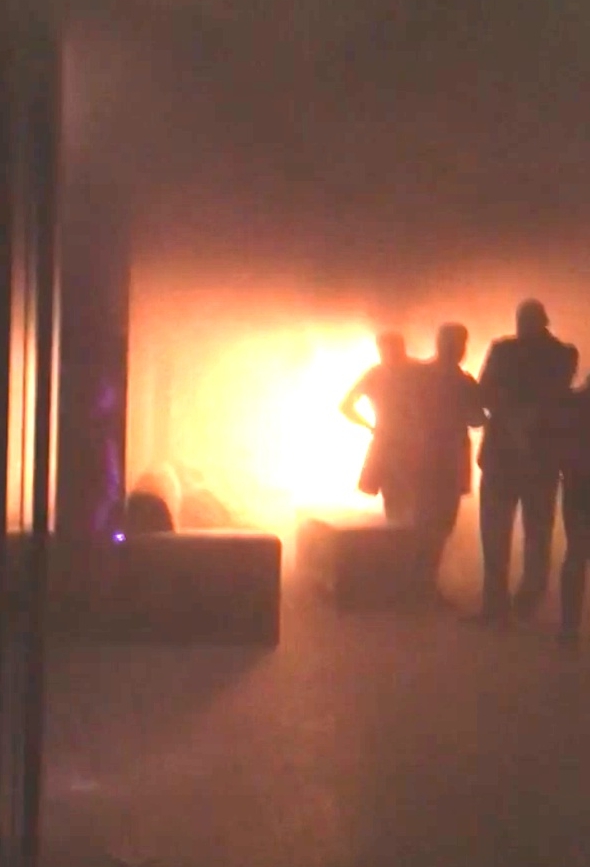 In imagini se vede ca incendiul era destul de mare cat in interiorul clubului inca mai erau oameni. De remarcat si ca in ciuda faptului ca erau flacari imense, muzica inca „bubuia” in boxe, putandu-se auzi melodia Shakirei cu Maluma, Chantaje!
