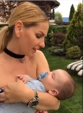 Imagini superbe cu Andreea Banica si bebelusul ei! Artista l-a leganat in gradina si i-a cantat
