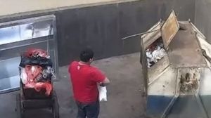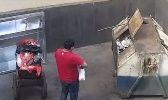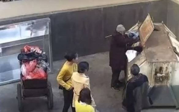 Scenele de groaza au fost filmate intr-un oras din China. Vecinii l-au vazut pe barbat in timp ce se indrepta spre tomberon si li s-a parut suspecta atitudinea sa.