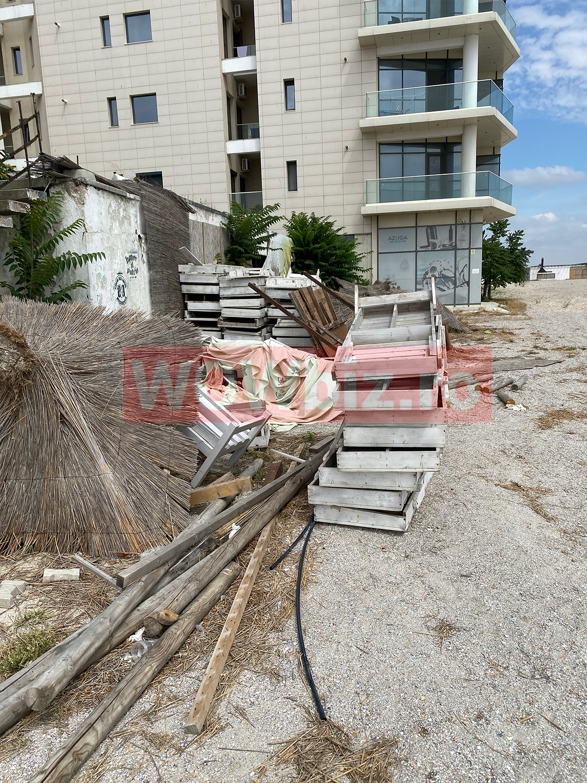 În zona de nord a stațiunii, acolo unde luxul este la el acasă, nu toți antreprenorii au apucat să strângă și materialele de construcție folosite pentru o mică renovare a locurilor, așa că unele dintre ele au rămas aruncate direct pe nisip.