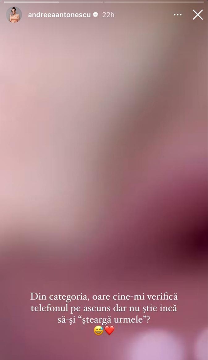 „Din categoria, oare cine-mi verifică telefonul pe ascuns, dar nu știe încă să-și șteargă urmele?”, a scris în mediul online Andreea Antonescu, amuzată de situație.