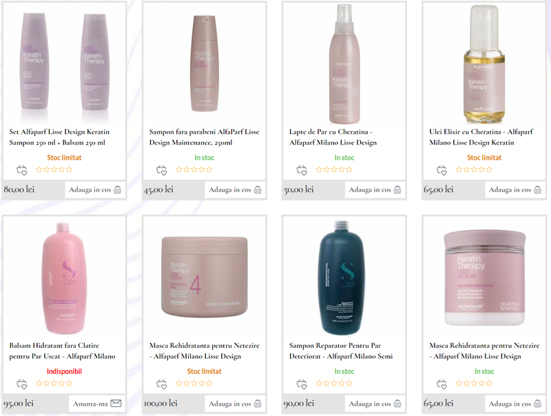 In magazine de specialitate, precum beauty4ever, sunt disponibile si alte produse pe baza de cheratina, care trebuie aplicate in functie de dozele bine definite, in functie de starea de sanatate in care se afla parul si cu un pret de vanzare care nu are concurenta pe piata.