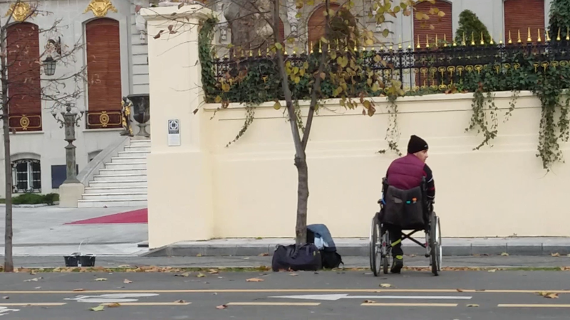 Impresionant! Un tanar in scaun cu rotile a asteptat ore intregi in fata "palatului" lui Gigi Becali de Sfantul Andrei! E cel mai mare fan al latifundiarului!"A facut si Zavoranca pomana, dar nu se compara cu Nea Gigi" VIDEO EXCLUSIV