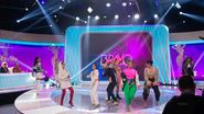 Fara sa stea pe ganduri, juratul Maurice Munteanu, fascinat de prestatia scenica a dansatoarei Simona, le provoaca la dans pe concurente.