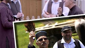 Scandal urias in Gaurenii de Jos! Enoriasii, Preotul Vasile (Vasile Pantiru) si Dascalul parohiei (Claudiu Dobrita), din celebrul sat Gaurenii de Jos, protesteaza impotriva numirii altui preot in fruntea bisericii din satul lor, intr-un nou episod al serialului de comedie "Moldovenii".