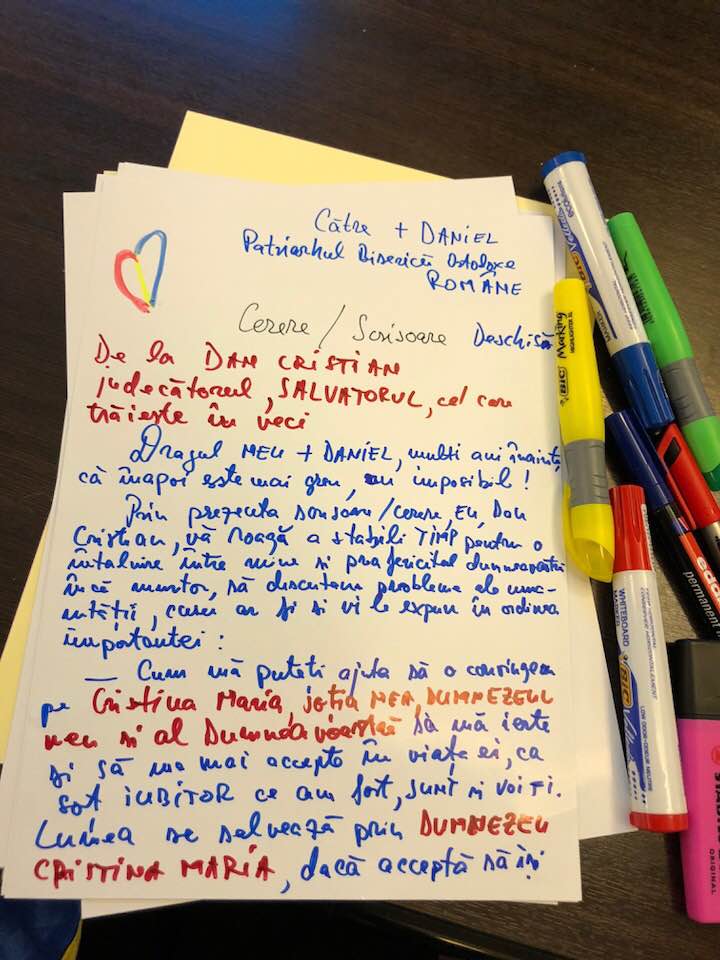 ”Către +Daniel, Patriarhul Bisericii Ortodoxe Române. Cerere / Scrisoare pentru o întâlnire.