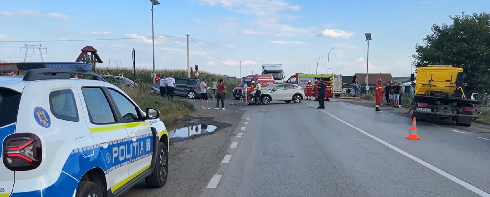 11 victime au avut nevoie de îngrijiri medicale, după ce într-o intersecție la intrarea pe E85 a avut loc un impact puternic între trei mașini.