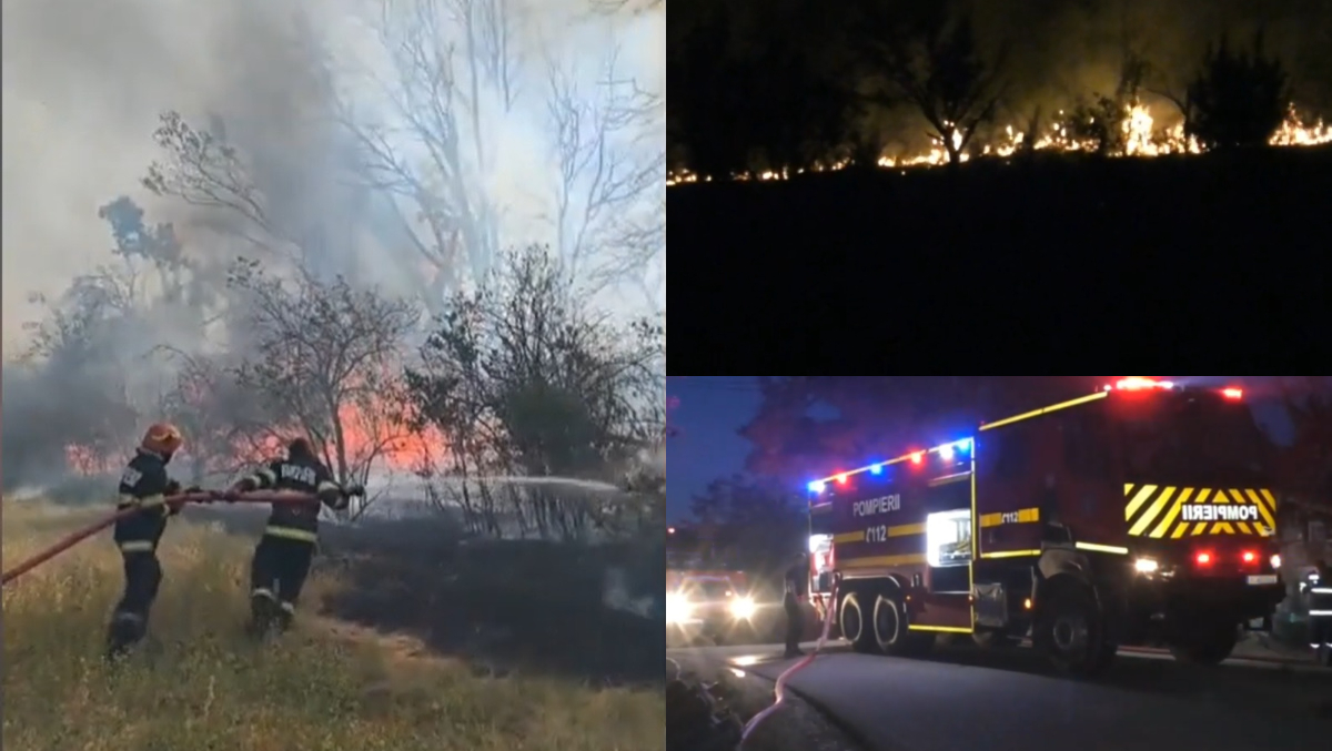 La fel s-a întâmplat și în Dolj, într-o localitate din apropierea Craiovei. Zeci de pompieri au intervenit, după ce 3.000 de metri pătrați de vegetație și o anexă au fost distruse.