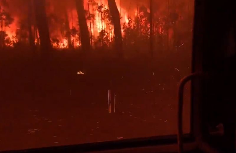 Reprezentanții Serviciului de Pompieri au publicat, pe Twitter, imagini cu flăcările violente filmate chiar dintr-o mașină de pompieri care trece practic prin foc. Chiar și în situația dată, salvatorii dau dovadă de calm și profesionalism.