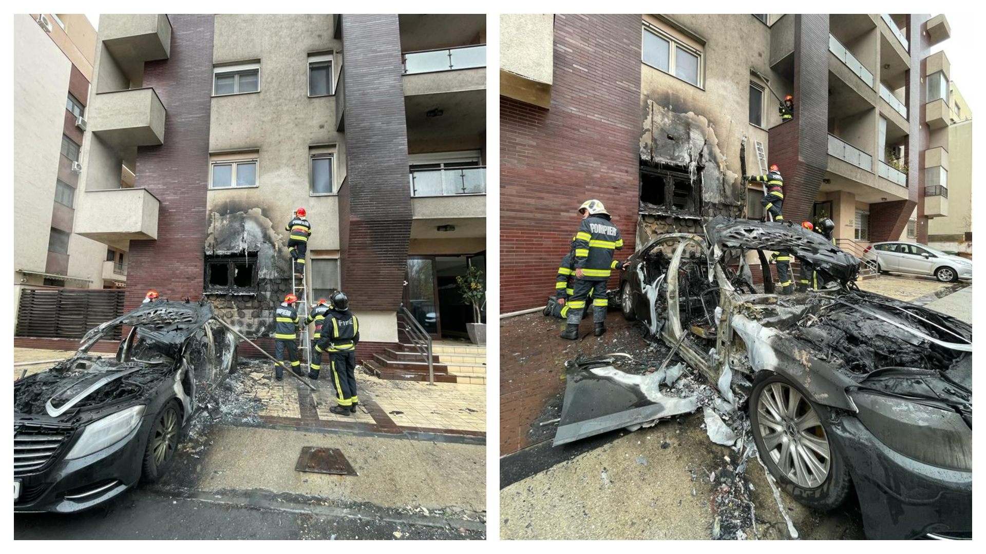 Autoritățile au transmis că nu există victime, dar fațada clădirii din apropiere și un alt autovehicul au fost afectate în urma incendiului: „În urmă cu scurt timp am fost solicitați pentru a interveni pentru stingerea unui incendiu produs la un autoturism, în Str. Aron Cotrus.