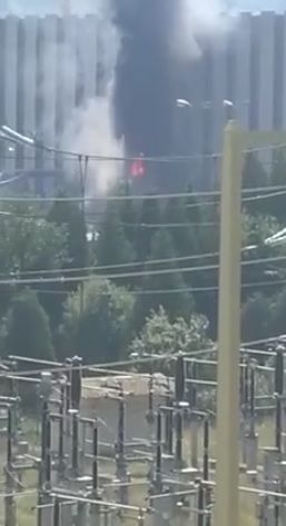 Din primele informatii, incendiul a pornit de la un transformator de la intrare si se manifesta cu flacara deschisa.