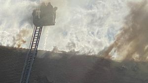 Arderea se manifestă în podul hotelului. Una dintre străzile din zonă este blocată.