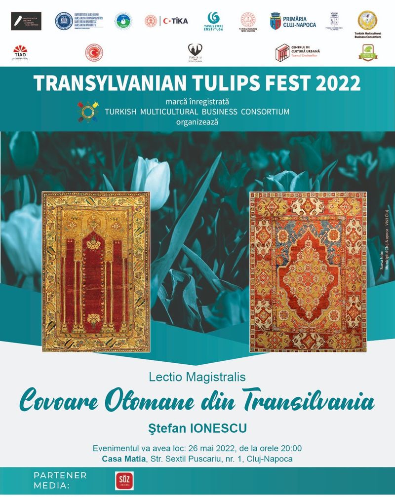 Specialistul Ștefan IONESCU va susține o Lectio Magistralis pe tema „Covoare Otomane din Transilvania”. În cadrul conferinței, vor fi analizate aspecte generale legate de prezența masivă a covoarelor Anatoliene de perioadă Otomană în Transilvania, cât și exemple din colecțiile clujene.