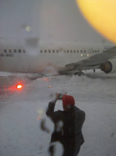 Incident aviatic la Cluj. Un avion al Blue Air cu 116 pasageri a ieşit de pe pista la aterizare din cauza zăpezii. Aeroportul a fost închis