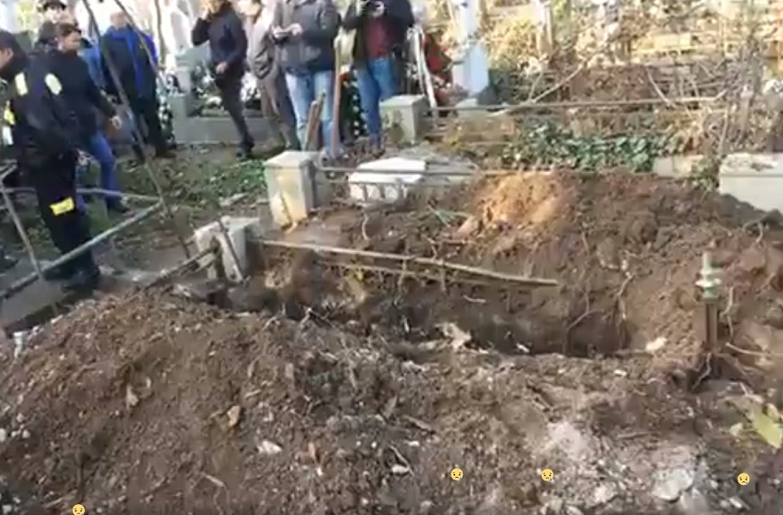 Incident la inmormantarea Cristinei Stamate - Groparii au fost la un pas sa scape sicriul cand l-au coborat in groapa. Lumea, inmarmurita in fata acestor scene