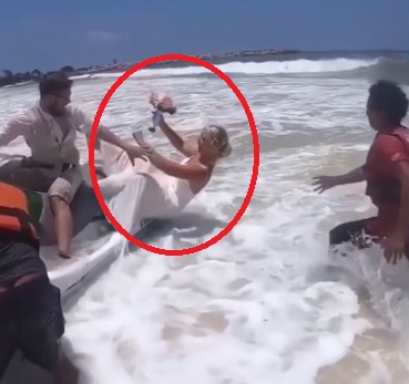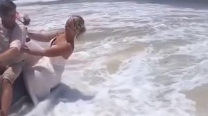Incredibil! Ce i s-a întâmplat unei mirese pe plajă! A fost salvată în ultimul moment. VIDEO