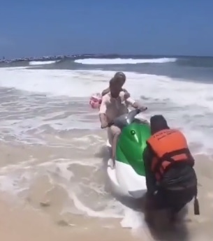 Tânăra, proaspătă măritată, alături de partenerul vieții sale, un tânăr chipeș, s-au ”îmbarcat” pe un jet ski pentru a face o ședință foto memorabilă. Și, cu siguranță, va rămâne așa, căci în timp ce mireasa se chinuia să se urce pe ski jet și să rămână pe el, la un val mai puternic, când apa a luat pur și simplu ambarcațiunea, a căzut pe spate. Un bărbat a venit imediat să o ridice din apă. Chiar și-așa, ușor zâmbind, și-a înlăturat genele false, având rochia și coafura distruse. Iată videoclipul!