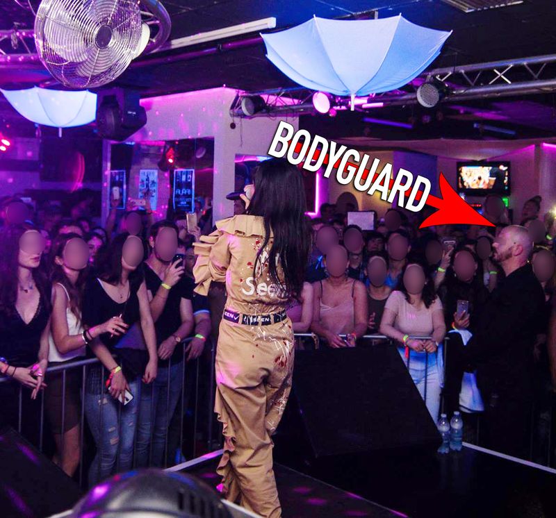 Doua luni mai tarziu de la incidentul cu fanul inrait, Inna a cantat intr-un club din Germania. In jurul scenei nu doar ca erau 3-4 bodyguarzi, ci si garduri imense de fier, pentru mai multa protectie. Astfel, fanii brunetei nu putea urca pe scena langa ea.