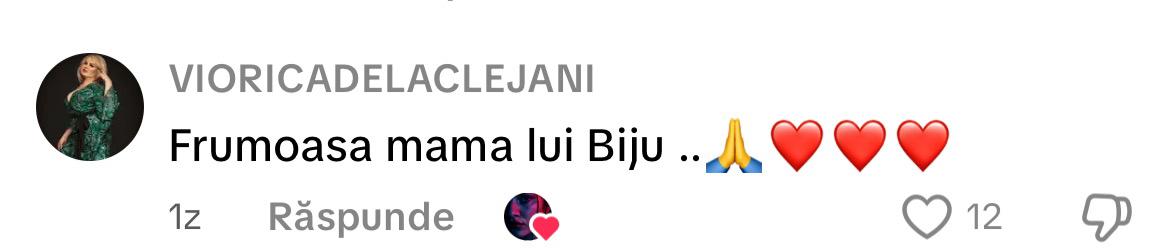Prima care a reacționat a fost chiar Viorica de la Clejani, care nu s-a putut abține și a lăsat un comentariu de apreciere pentru femeia care i-a da viață manelistului: „Frumoasă mama lui Biju”.
