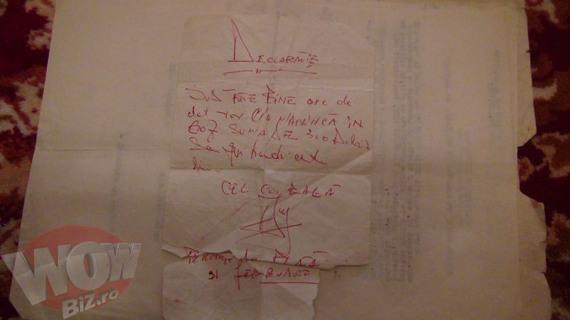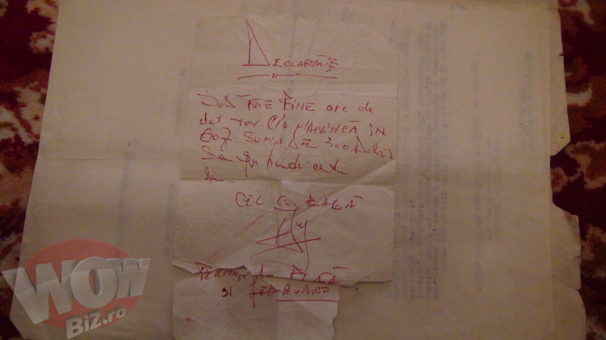 „DECLARATIE – Subsemnatul F*TE BINE are de dat tov. CIO MANANCA IN G*OZ suma de 300 Dolari. Sa f*t handicapata. CEL CIO BAGA. Semnat Vasile Turcu, TERMEN DE PLATA 31 februarie” – Asa arata un bilet-declaratie prin care Vasile Turcu isi batea joc de consoarta Nina, cand aceasta ii cerea bani pentru cheltuielile casei