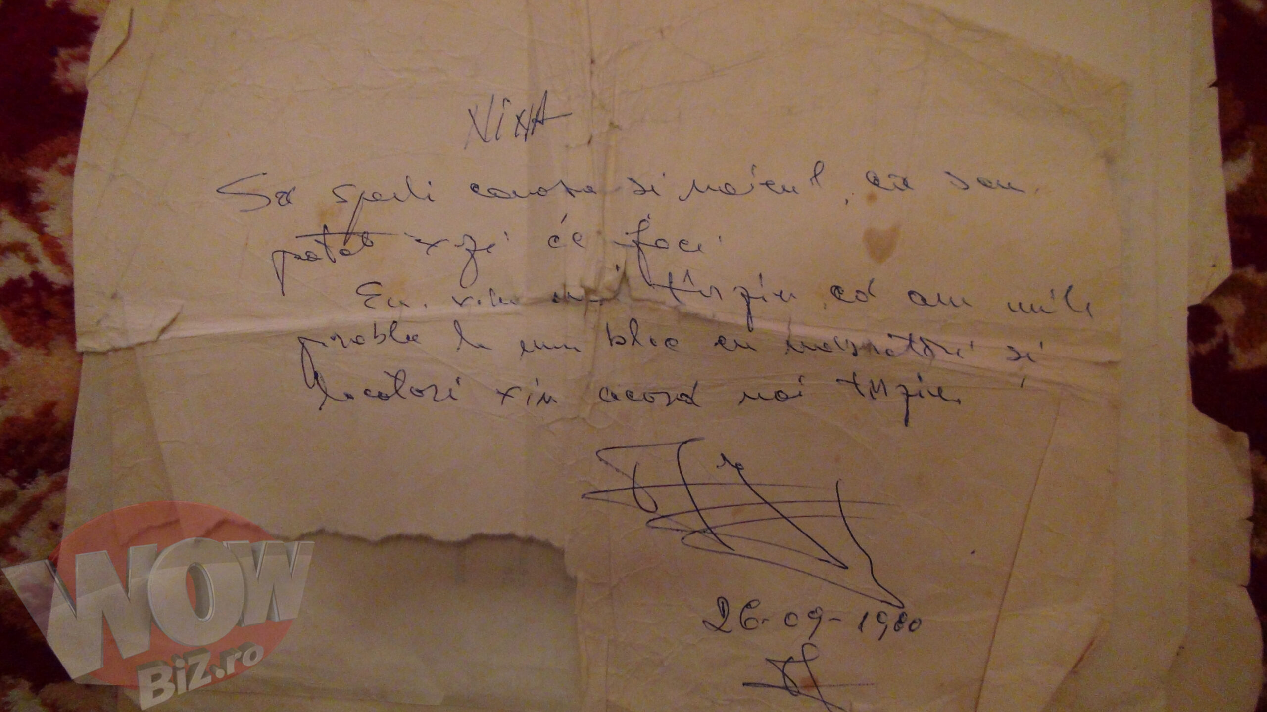 „Nina, sa speli camasa si maieul ca sau patat vezi ce faci. Eu vin mai tarziu ca am unele probleme la un bloc cu constructori si locatari vin acasa mai tarziu. Vasile Turcu, 26.09.1980” Asa ii scria Vasile Niculinei, intr-un bilet pastrat pana in ziua de azi de femeie