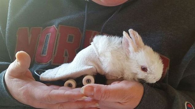 Acest micut iepuras a fost gasit de un fermier din Overlook Acres, Statele Unite. Micutul animalut ar fi trebuit eutanasiat pentru ca avea picioarele din spate paralizate si nu se putea deplasa.