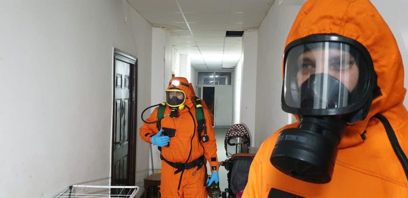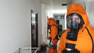 Întreaga noapte echipele de verificare chimică au intrat din nou în fiecare locuință purtând costume speciale și folosind aparatura de masurare. Au preluat informatii legate de nivelul de concentratie al substantelor folosite pentru deratizarea din ,,Blocul Mortii” precum și în blocul vecin.