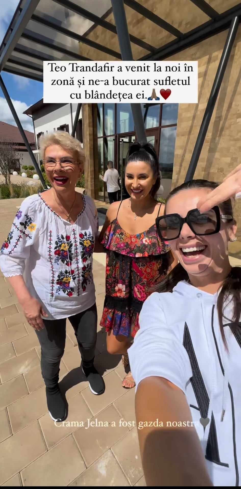 „Teo Trandafir a venit la noi în zonă și ne-a bucurat sufletul cu blândețea ei.”, a scris Georgiana Lobonț pe Instagram, în descrierea filmulețului în care apare alături de Teo Trandafir.
