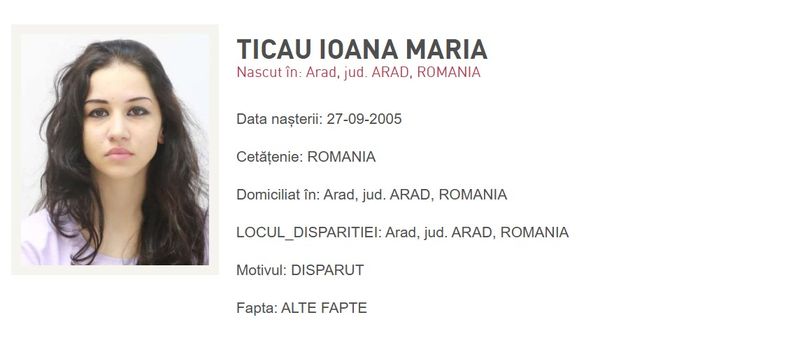 Oricine o observă pe Ticau Ioana Maria este rugat să apeleze 112 sau să se prezinte la cea mai apropiată unitate de poliție, furnizând toate informațiile relevante autorităților.