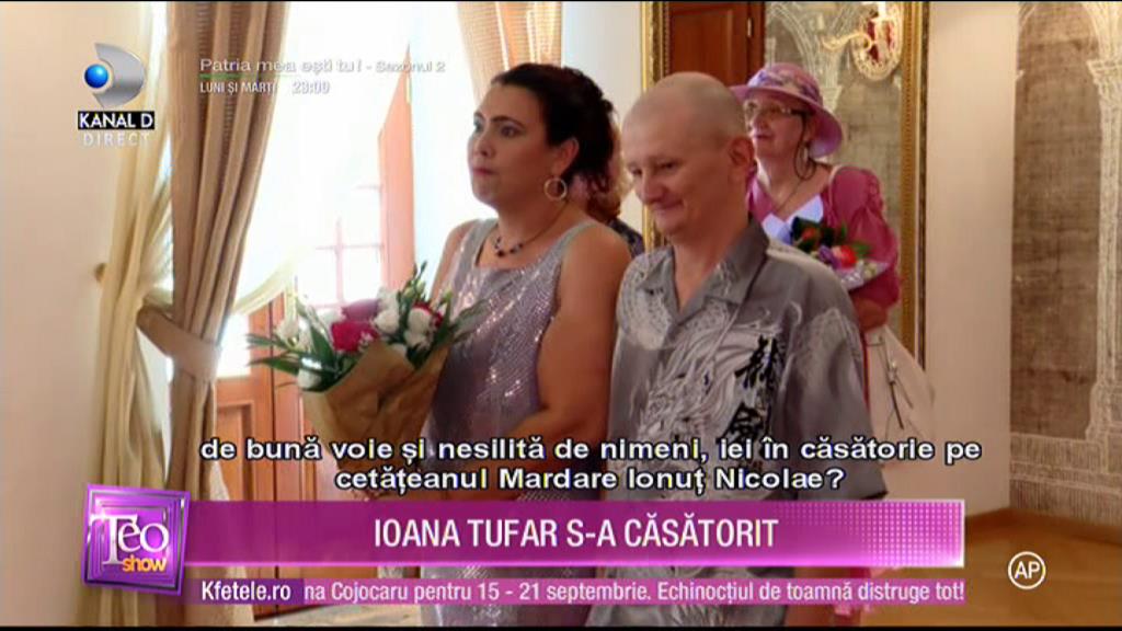 Ioana Tufar, fiica Andei Călugăreanu, s-a căsătorit astăzi. La ora prânzului, Ioana și Ionuț au devenit oficial soț si soție. O echipă de filmare de la Teo Show a mers la Starea Civilă și a filmat momentul în care Ioana Tufar a spus da și a devenit doamna Mardare.