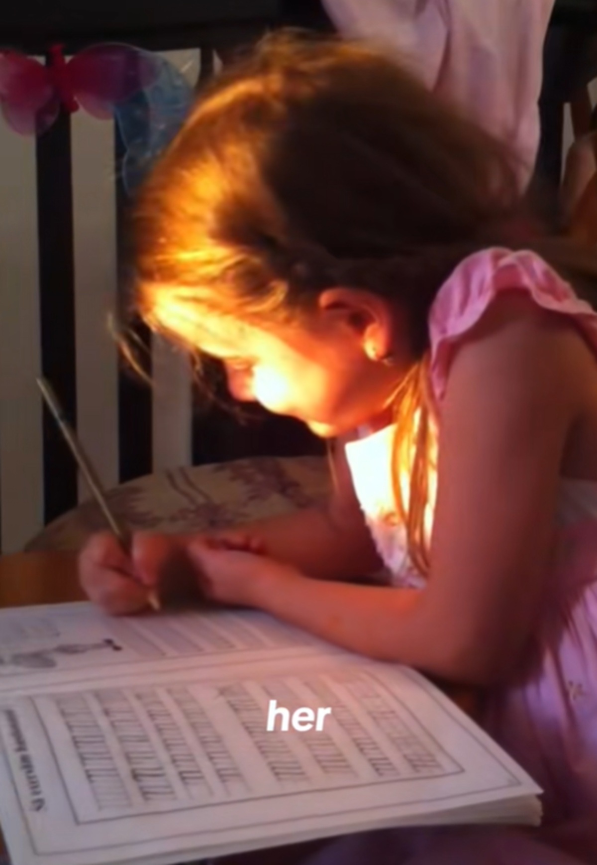În clip, Irina Columbeanu face o paralelă între ea acum, la 18 ani, și ea micuță, în aceeași ipostază de studiu. Imaginile au adunat mii de aprecieri pentru felul ei sensibil în care a fost educată.