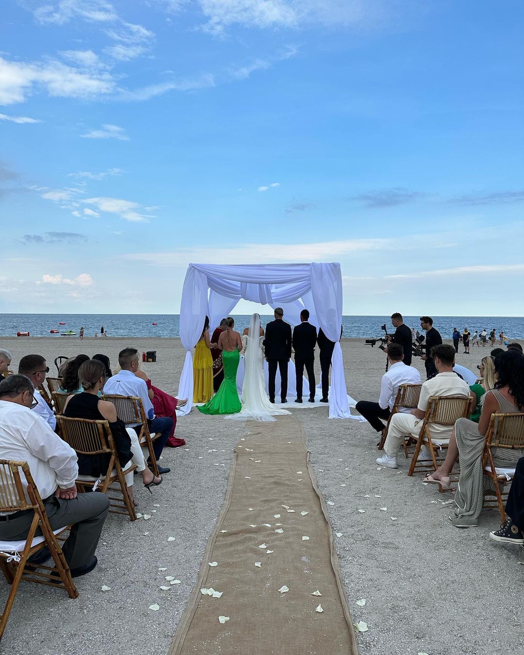 Irina Deaconescu și Cristi Manea sunt un cuplu foarte apreciat în mediul online. Ea este un cunoscut influencer pe Instagram, iar el este fotbalist la CFR Cluj și împreună au două fetițe minunate, pe Victoria și Venus. Astăzi, cei doi și-au unit destinele la malul mării, într-un cadru de vis. Săptămâna trecută, cei doi îndrăgostiți s-au cununat religios, fiind însoțiți la biserică doar de câteva persoane apropiate lor. Azi, Irina și Cristi au organizat o ceremonie emoționantă la malul mării, urmată de o petrecere de pomină la un restaurant de pe plajă.