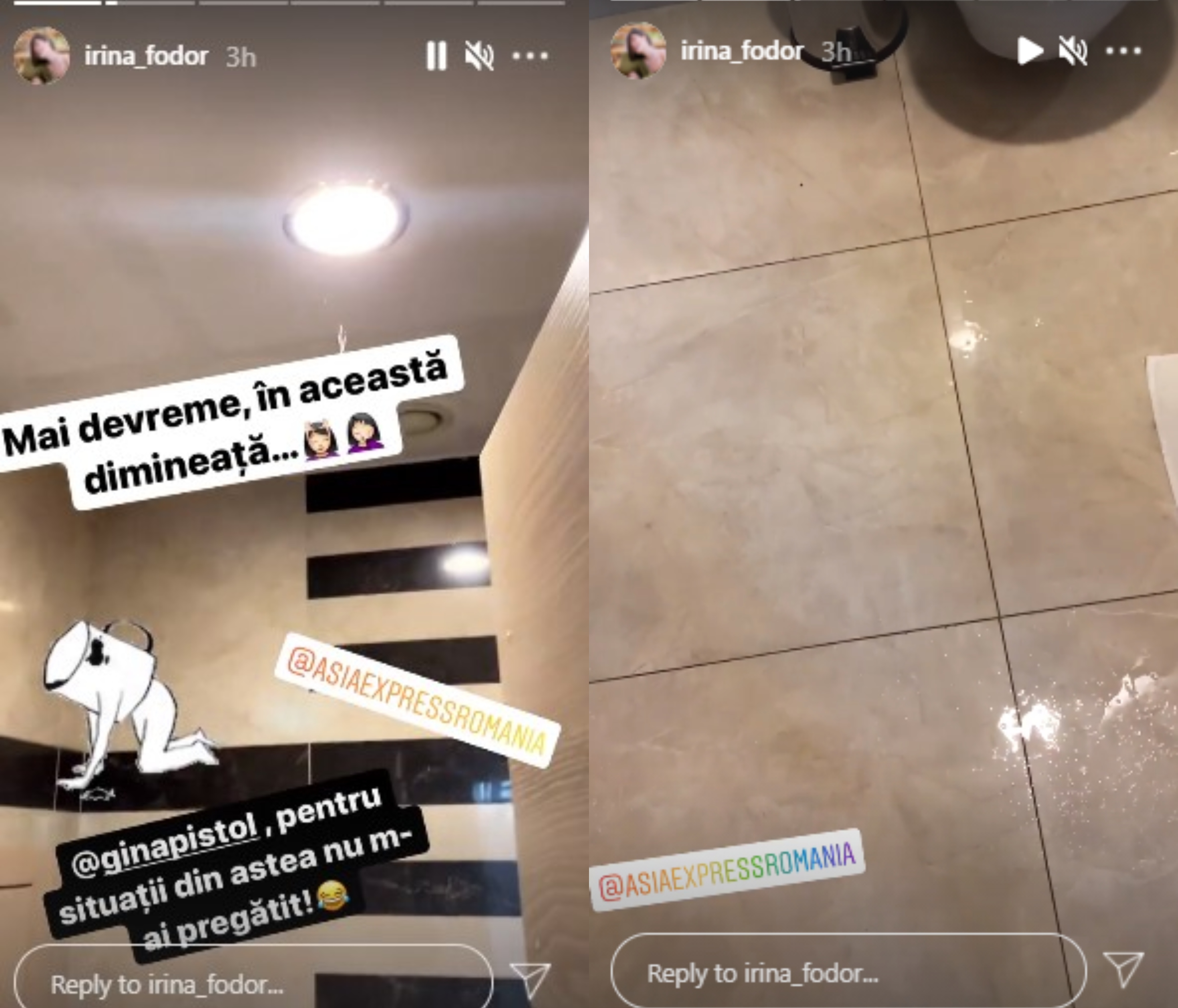 Se pare că deși nu este concurentă și are cazare asigurată din partea producătorilor, Irina Fodor nu este ocolită de ghinione și de complicații. Trebuia să întâmpine cele 9 echipe în noul sezon „Asia Express”, dar când se pregătea pentru filmări a descoperit că întreaga baie din hotel era inundată. Se pare că au fost scurgeri chiar prin tavan, mai exact pe la corpul de iluminat, de unde, de altfel, se vede pe imagini cum iese fum.