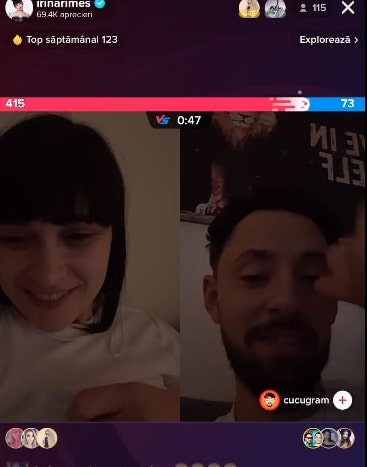 Irina Rimes, pe lângă cariera muzicală de excepție, are și o viață personală fabuloasă. Aceasta nu vorbește prea des despre viața ei personală, preferând să fie discretă în ceea ce privește acest subiect. Într-una din seri, Irina Rimes a făcut live pe Tiktok, unde s-a întrecut în puncte cu Cucu Gram, membru al formației "Noapte Târziu".