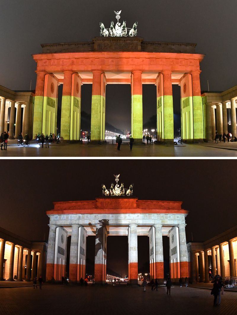 In memoria victimelor, Poarta Brandenburg Gate a fost iluminata in culorile steagului Germaniei, dar si al Berlinului.
