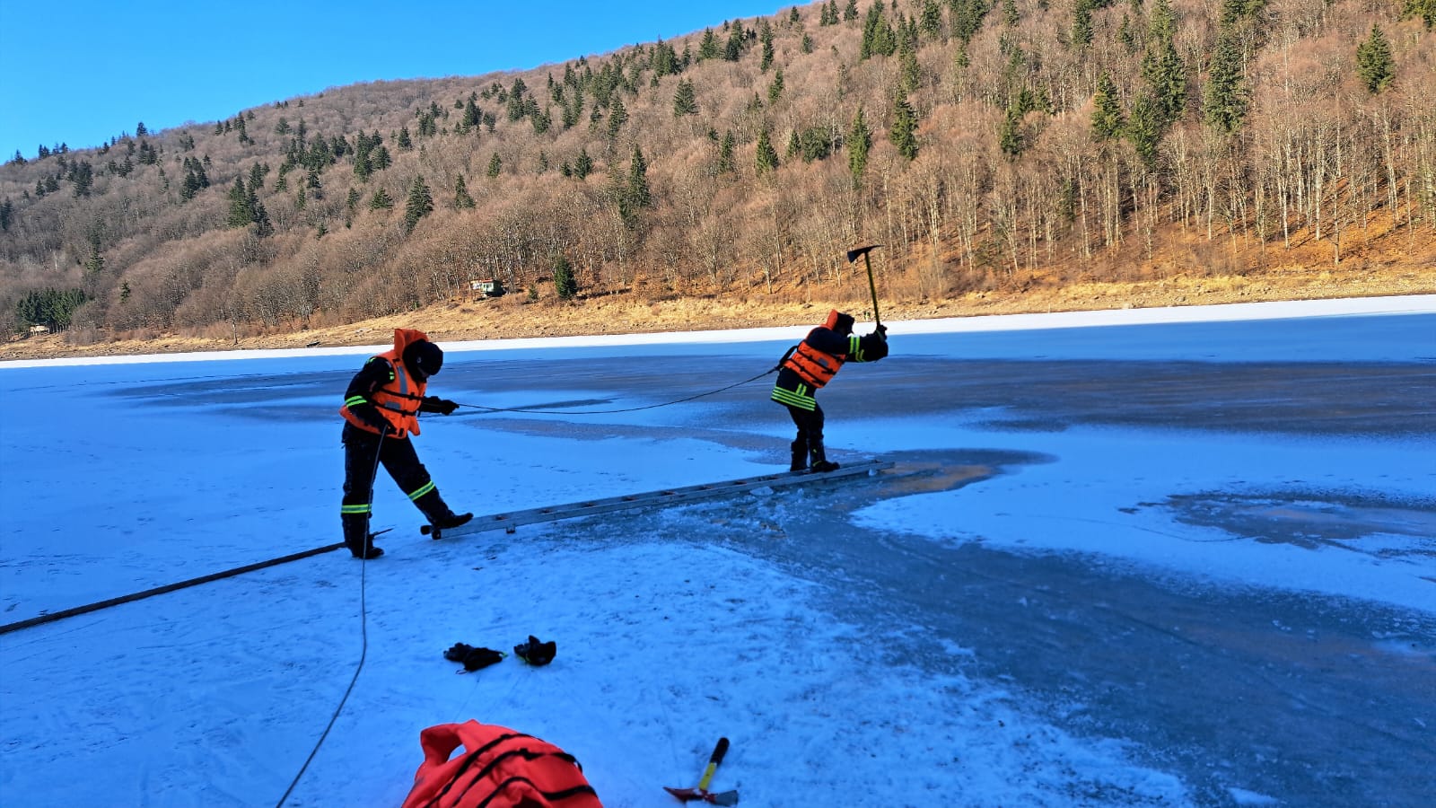 „Intervenție de căutare a unei persoane care se presupune că ar fi dispărut în lacul Zetea: Seara trecută, 3 echipaje de pompieri din cadrul Detașamentului Odorheiu Secuiesc, cu o autospecială de intervenție, o autospecială de primă intervenție și comandă cu barcă și o ambulanță SMURD au verificat zona în care se presupune că a intrat în lac o persoană dată dispărută (bărbat, 23 ani), efectuându-se spargeri în