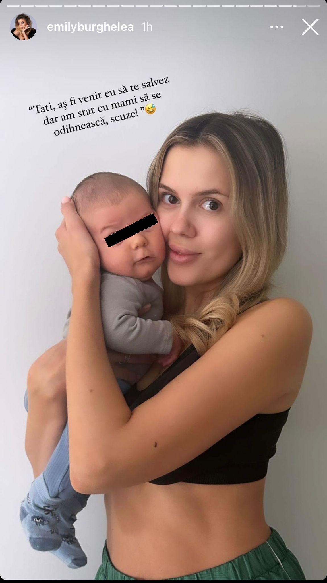 „Tati, aș fi venit eu să te salvez, dar am stat cu mami să se odihnească, scuze!”, s-a arătat în postarea lui Emily Burghelea.