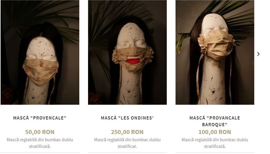 Cel mai ascum model de mască, Les Ondines, costă 250 de lei. „Les Ondines" spune povestea ta, dincolo de conventii, dincolo de cuvinte. Piesa anunta o serie de itemuri in acelasi registru de voce. Descopera intreaga colectie incepand cu 31 mai. Masca Faciala bumbac dublu stratificata.”, este descrisă masca pe magazinul online al Iuliei Albu.