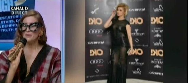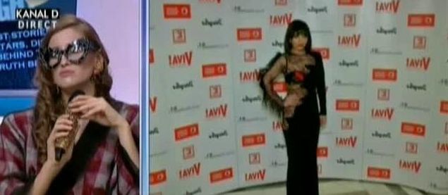 Anca Turcasiu- Aceasta Morticia moderna. Sa nu uitam ca acest personaj a consacrat acest tip de rochie. Cand porti astfel de rochie, ai nevoie de un styleing mare. Ea arata fabulos la varsta ei, dar aceasta draperie aruncata pe ea nu isi are niciun rost. Ii dam nota 0.