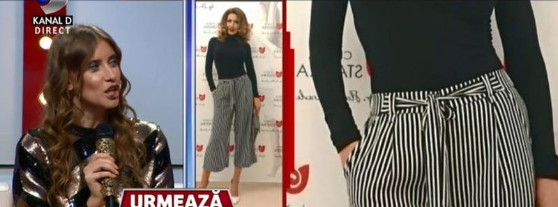 Carmen Bruma – Imi place combinatia de maleta cu acesti pantaoni si coafura. Imi plac foarte mult si pantofii in aceasta combinatie. Sper ca are ciopari de matase si primeste trofeul WOW.