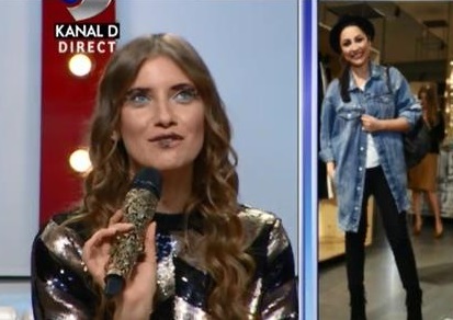 Andra – Jachetele din denim sunt in voga acest sezon. Ceea ce este tamp la aceasta tinuta este palaria care e pusa pe ceafa. Palaria se poarta pe cap si ea o poarta pe ceafa. Parca ar fi un personaj din desene animate. Botinele care au platou o patratesc, o ingrasa. Chiar daca e o tinuta casual, putea sa arate si altfel. Nu era cazul sa imbrace asa ceva. Eu am asteptari mai mari de la Andra. Este un performer cu milioane de fani si ma astept ca ea sa fie un exemplu pentru fanii ei. Poate ar fi bine sa-si angajeze un stilist. Andra primeste 0.