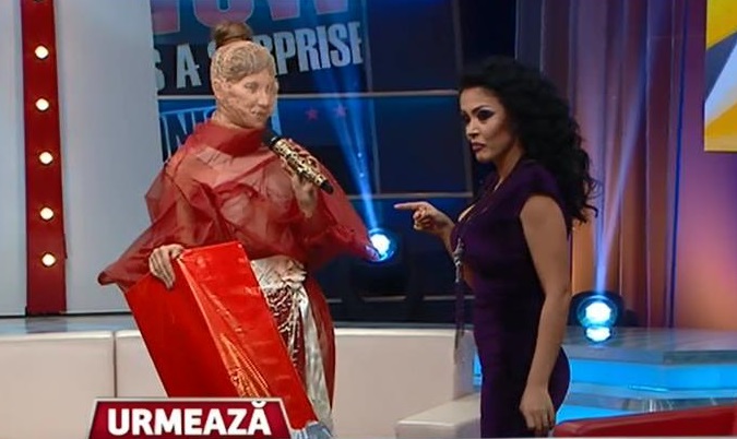 Iulia Albu nu a venit in platoul WOWbiz cu mana goala, ci cu o cutie rosie imensa. La un moment dat Andreea Mantea si-a deschis cadoul si a gasit in cutie o matura stilizata.