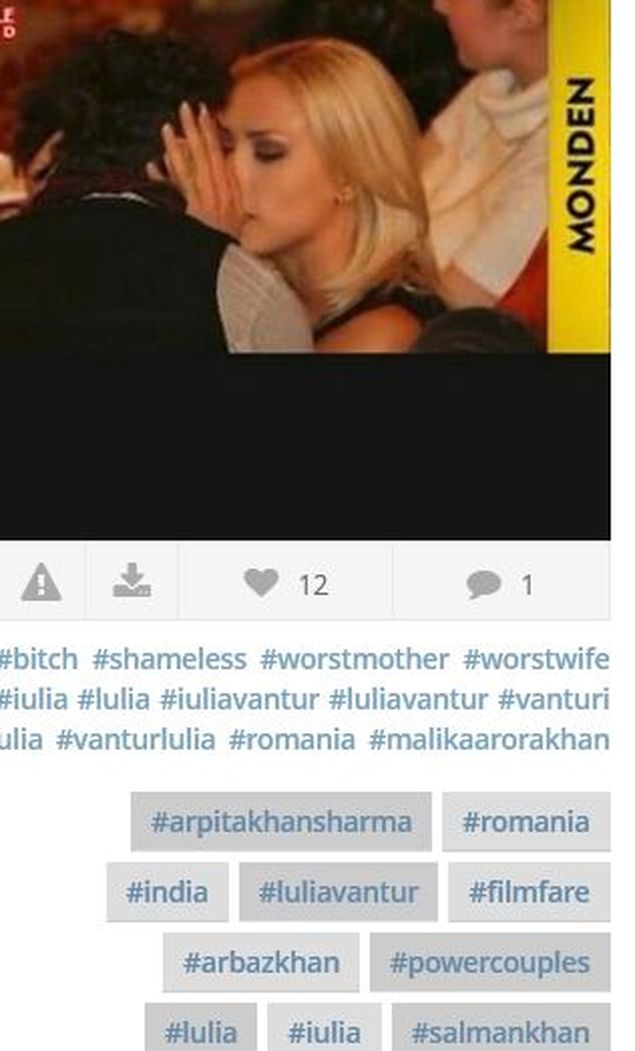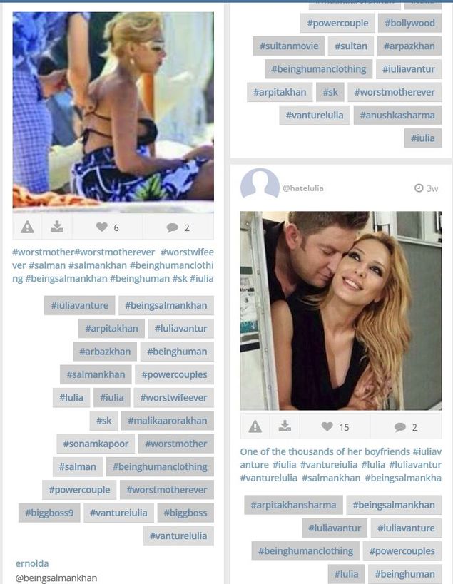 Admiratoarele infocate ale lui Salman Khan o urasc din toata inima pe Iulia Vantur. Ele s-au organizat pe Instagram pe contul „hateiulia”, unde incearca din rasputeri s-o discrediteze pe romanca. Aici ele posteaza imagini cu Iulia in cele mai suspecte ipostaze: in timp ce este la plaja si un barbat ii leaga sutienul, in timp ce se saruta cu Marius Moga (fostul ei iubit), cand are ruj pe buze, etc.