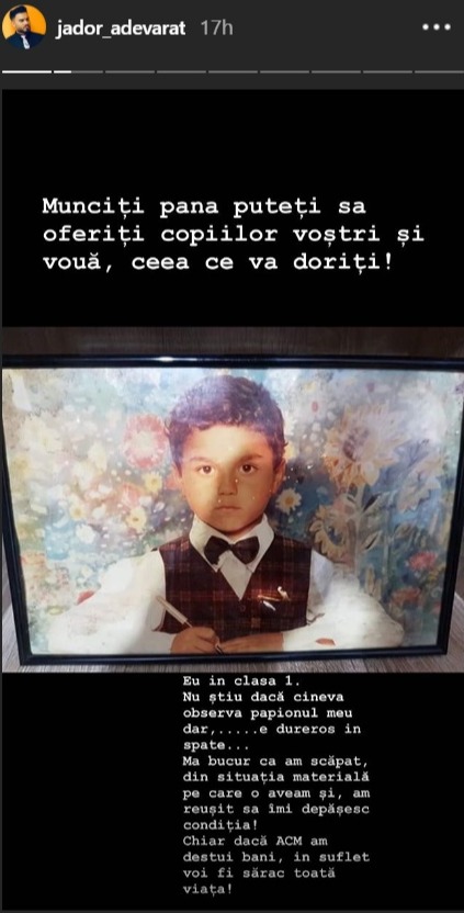 „Munciți până să oferiți copiilor voștri și vouă ceea ce vă doriți”, i-a îndemnat Jador de la Puterea Dragostei pe fanii care îl urmăresc, printr-un mesaj publicat pe pagina lui de Instagram.