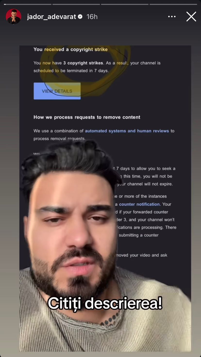 „Nu este adevărat (n.r. că el i-a închis contul de YouTube al lui Jador). Am și dovezi că nu i l-am închis eu. Într-adevăr, i-am dat strike la două melodii pe care le avea el pe canal și unul i s-a activat, al doilea nu. Cei din industrie și cei care au și ei canale știu că îți poți da canalul pe privat, adică să ți-l ascunzi tu cu mâna ta și să spui că ți l-a închis DeSanto”,