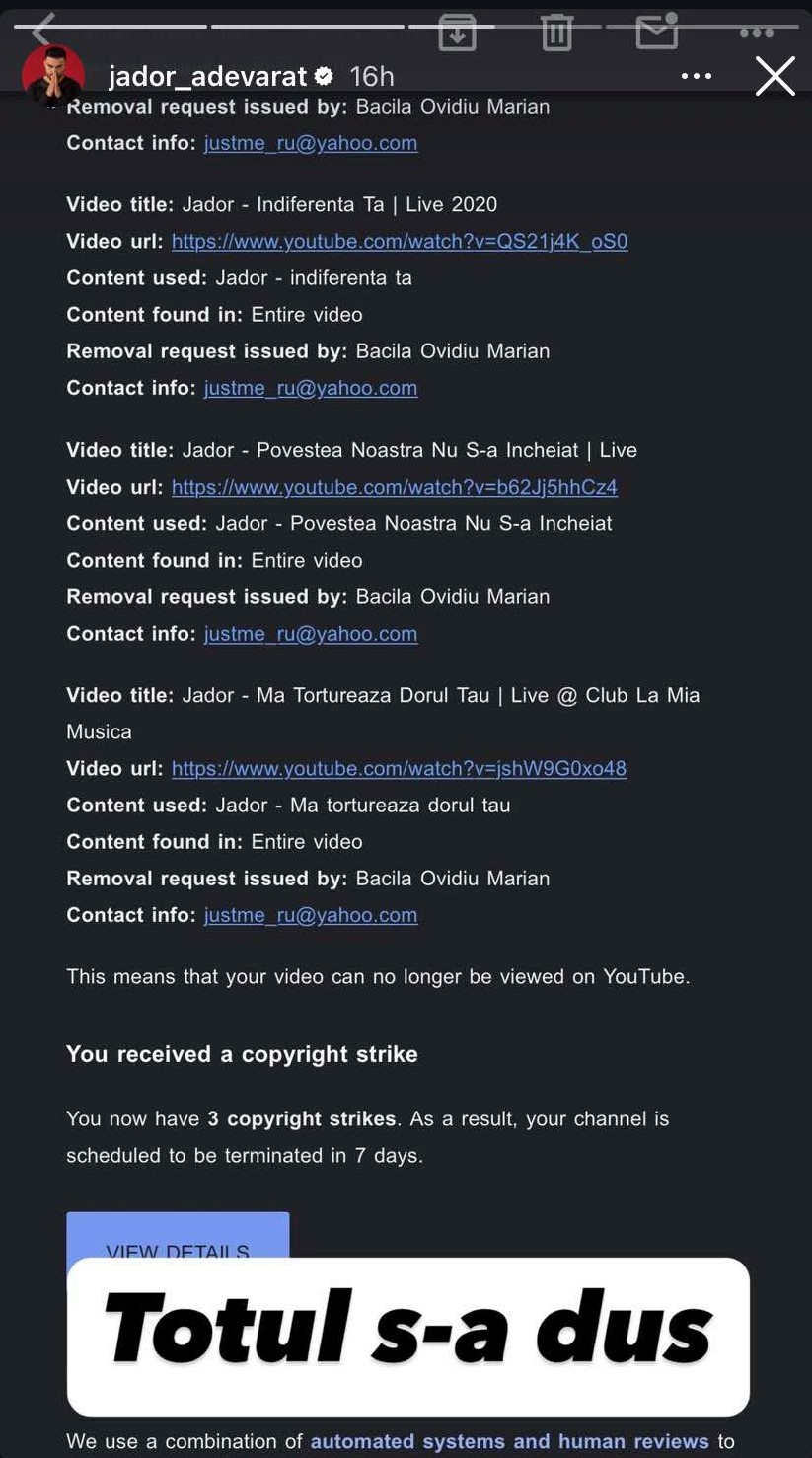 Extrem de afectat, Jador a mărturisit că întreaga lui carieră, dar și munca sa de ani de zile, s-au dus pe apa sâmbetei.