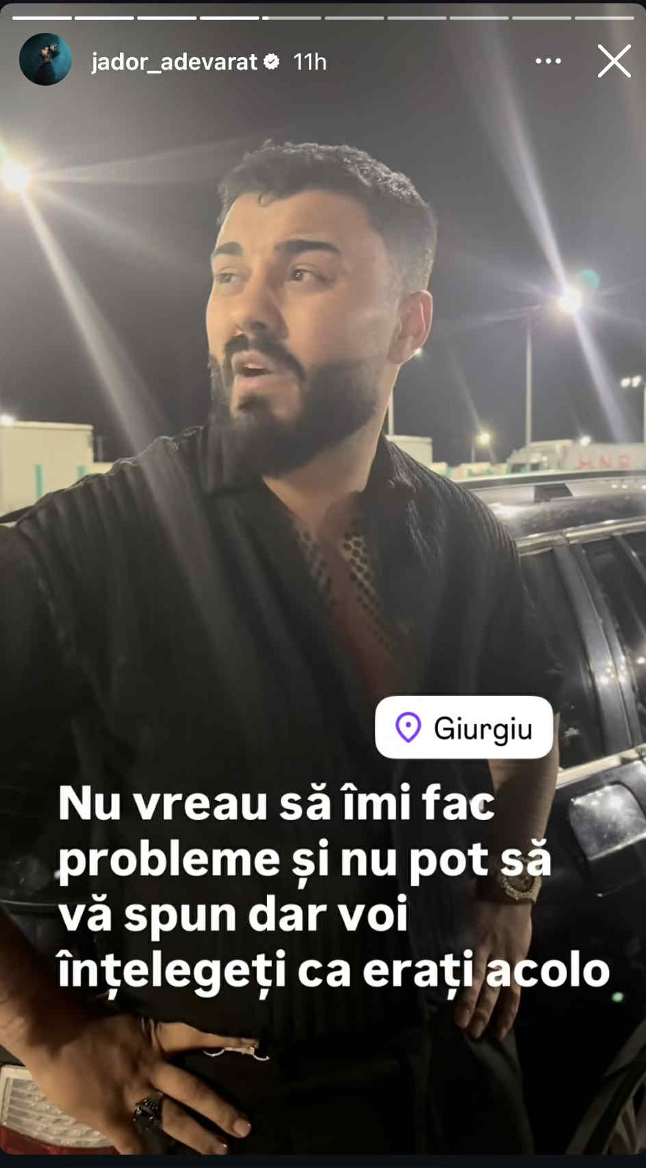 Mai mult de atât nu pot să vă spun, că nu vreau să-mi fac probleme nici mie și nimănui. Data viitoare o să fac cumva să fac poze. Din păcate, azi nu am putut pentru că nu a ținut de mine. Eu sunt unul singur și atât”, a spus Jador, într-un filmuleț postat pe Instagram.