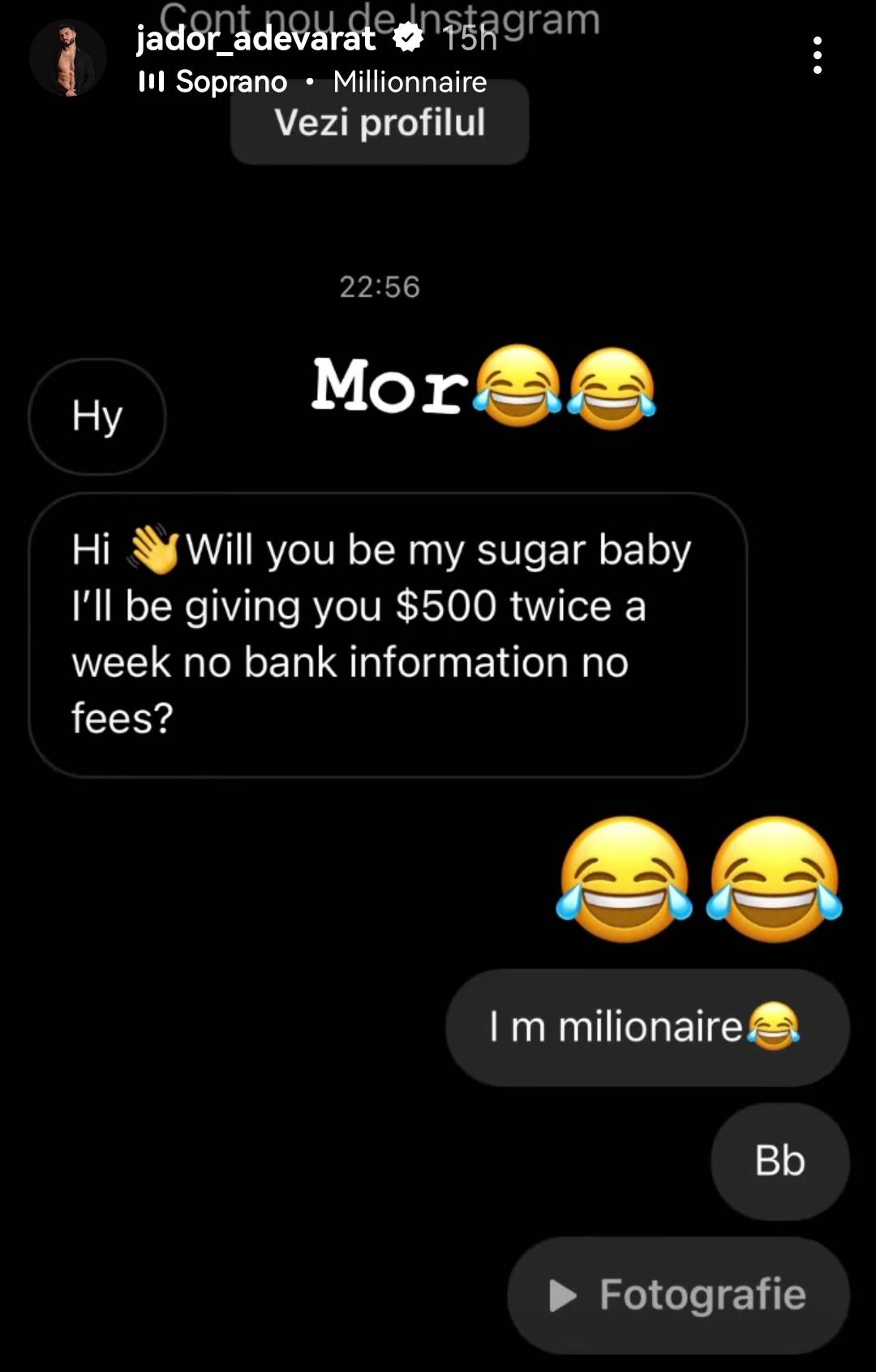 Jador: Baby, sunt milionar”, este scurta conversație pe care Jador a avut-o cu fana sa secretă.