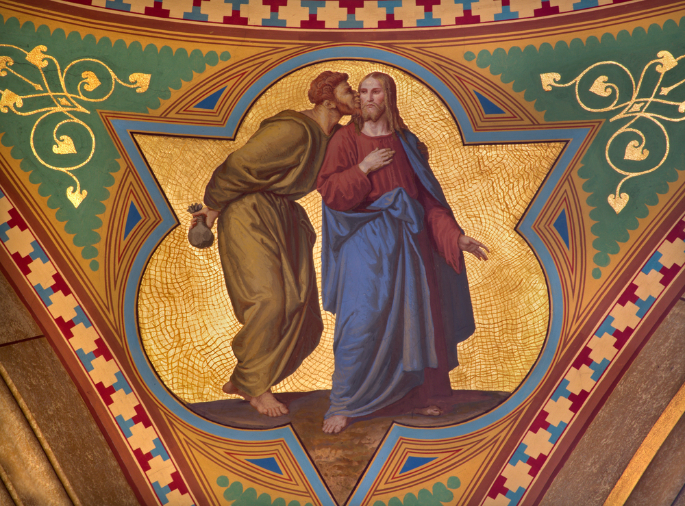 La cina cea de taină are loc momentul când Iisus prin folosirea vinului şi a pâinii le arată ucenicilor cum urmează să fie jertfit. „Cina Domnului a fost instituită de Iisus Hristos în noaptea în care a fost vândut”, spune apostolul Pavel făcând referire la momentul în care Iuda îl va trăda pe Iisus.